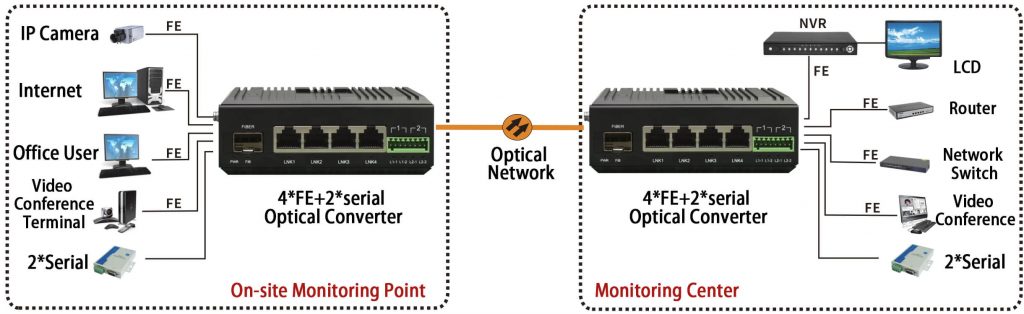 Industrial Din Rail 2*Serial or 4*DI/DO + 4*FE Optical Converter FCP-F4D2